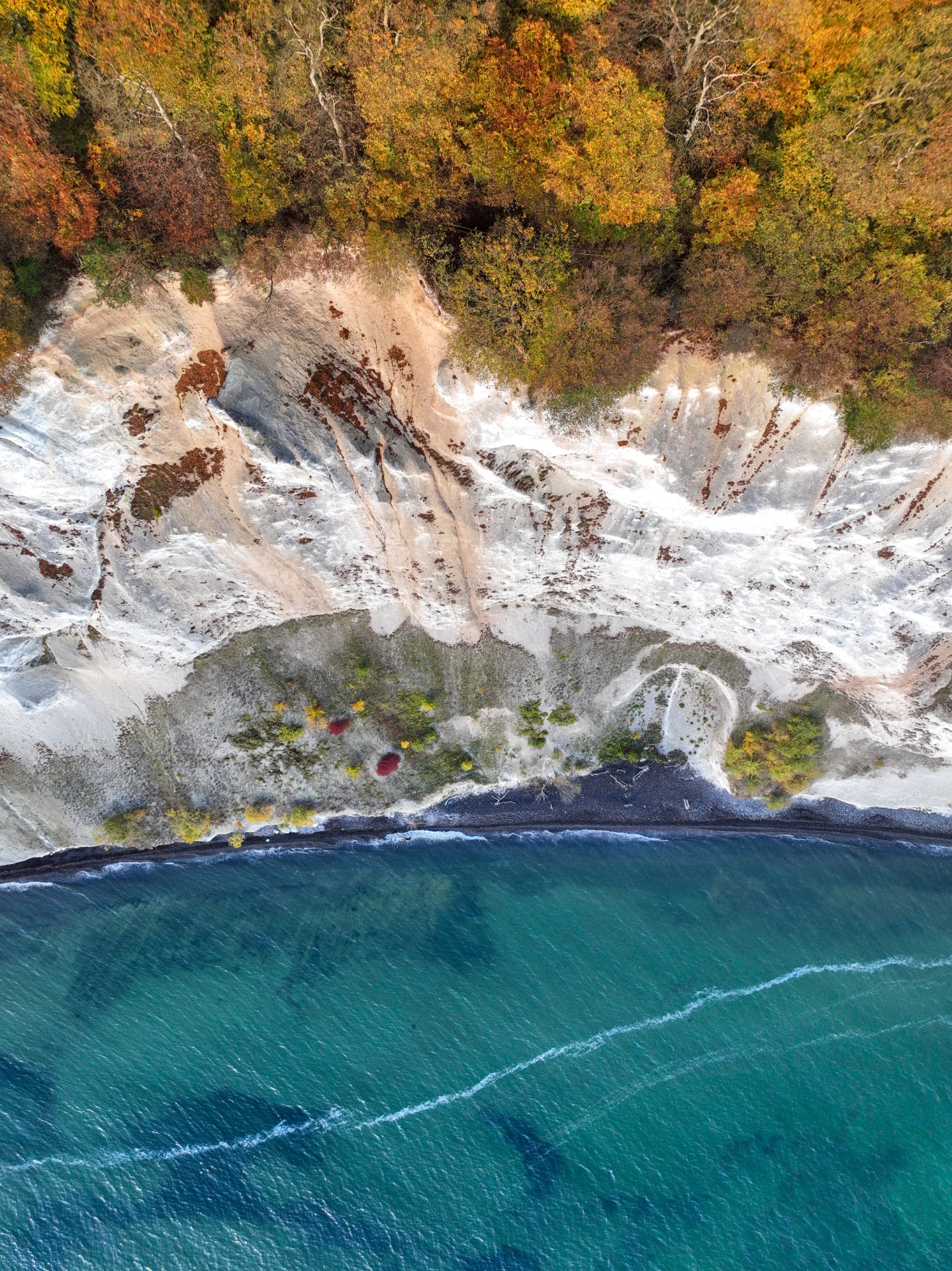 Havet möter hösten vid Møns Klint, Danmark.
